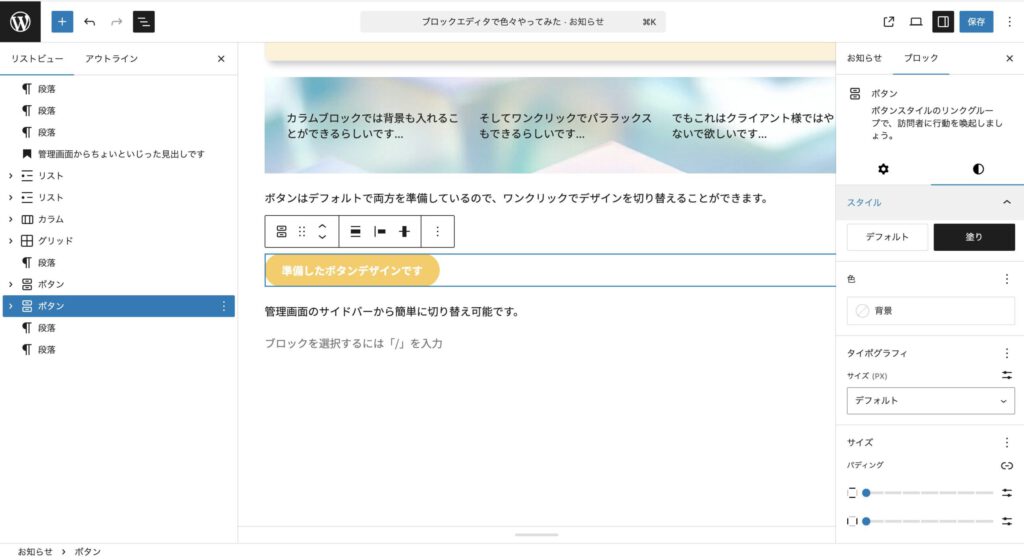 ブロックエディタを使用して色々やってみたいと思います。